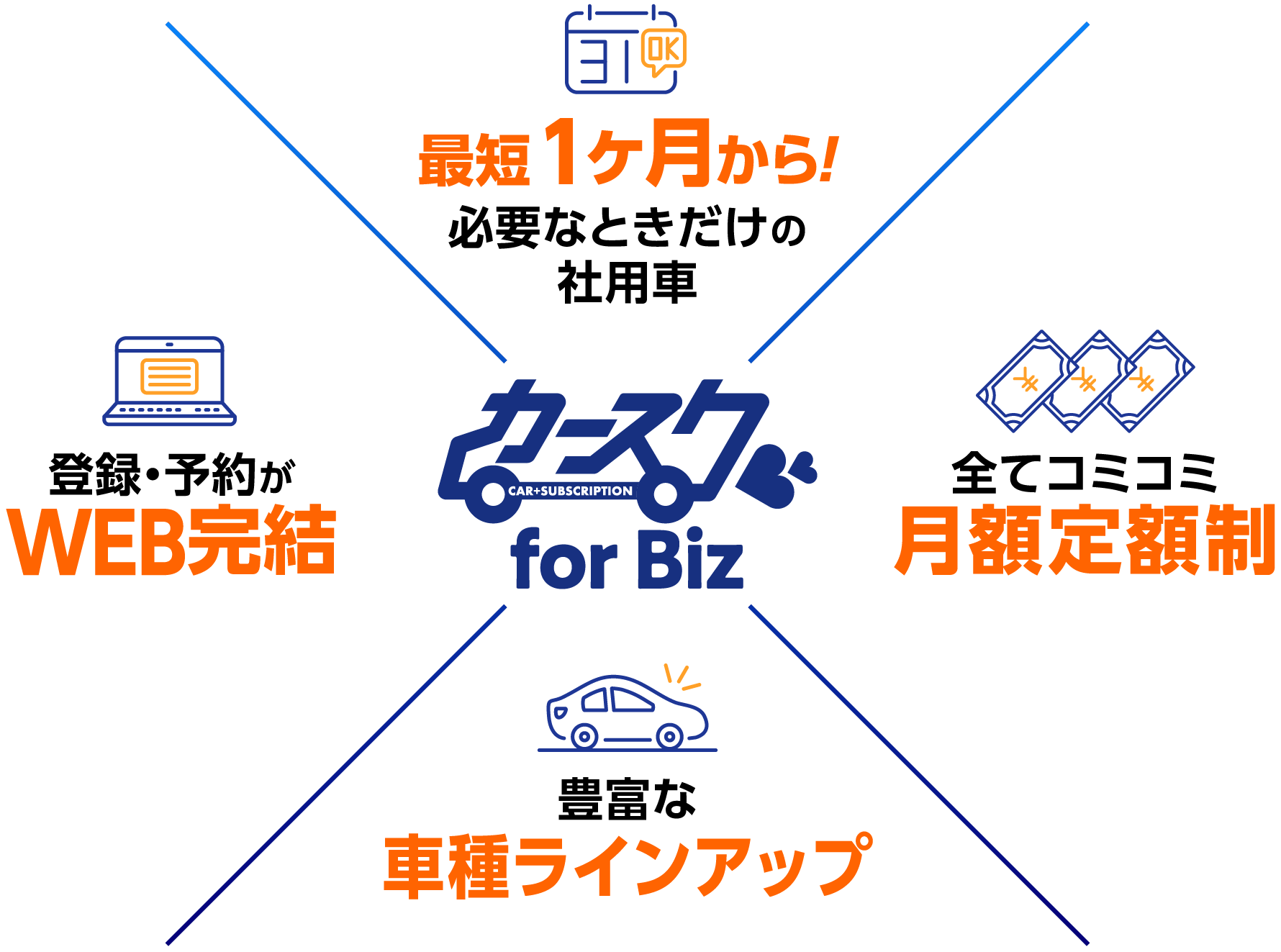 - 最短1ヶ月から利用可能で、利用期間による料金差もないため、必要なときだけ社用車を利用できます。